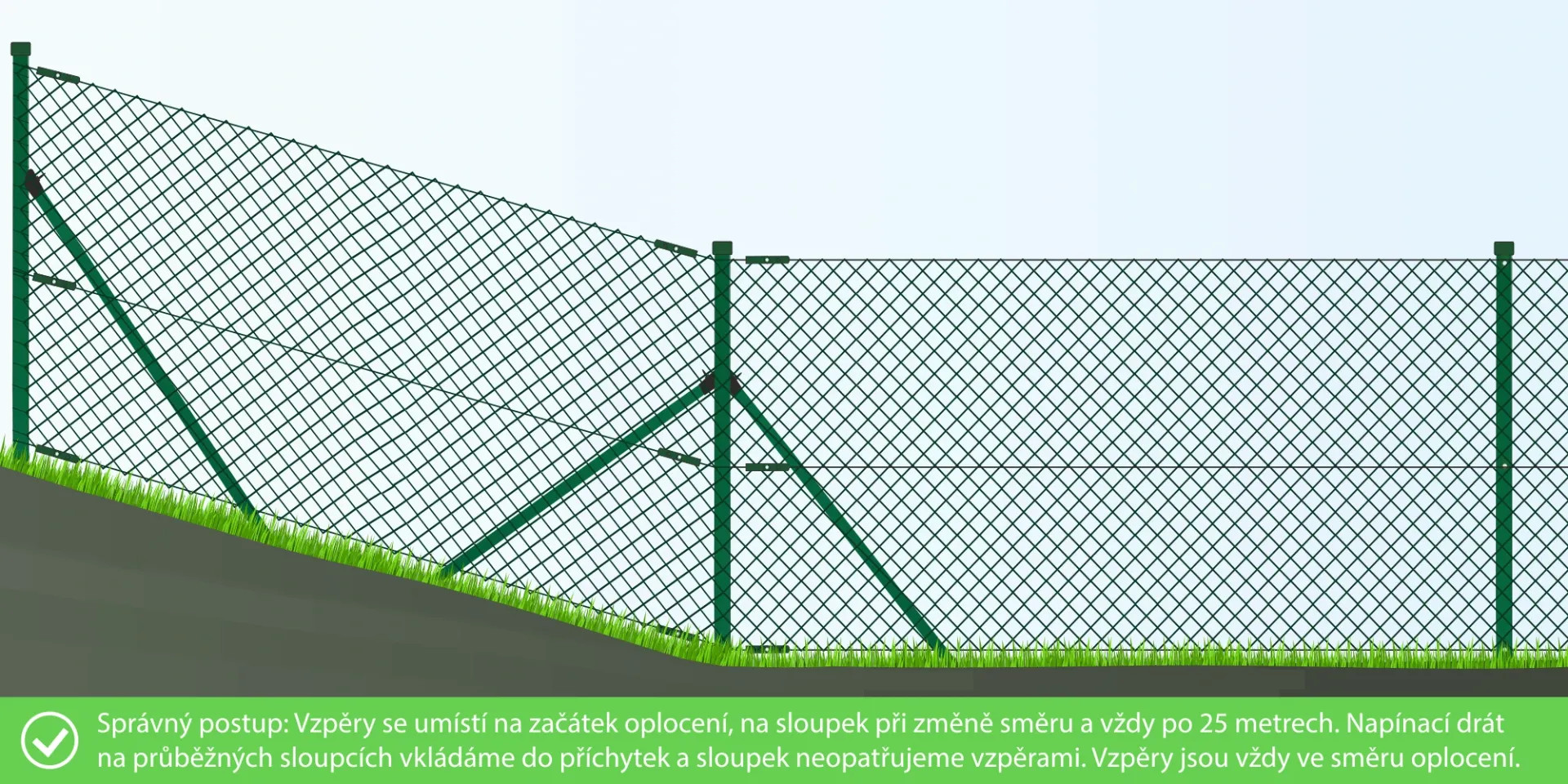 Princip použití vzpěr a vypínání pletiva